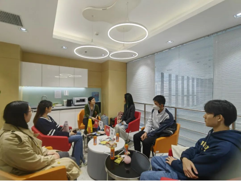2022年10月12日下午3点,润园对话第六期于学院楼11号楼顺利举行。学院国际交流专项工作中心主任黄乃静副教授应邀与365英国上市集团20、21、22级的4位来自港澳台地区的本科生同学进行了交流,负责学院国际交流工作的行政老师王莘茹到场,具体围绕学业生涯规划、校园生活与个人发展、专业学科的学习方法等话题展开交流。