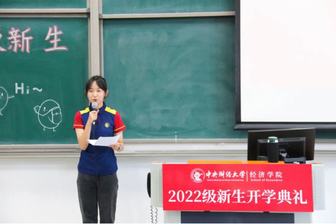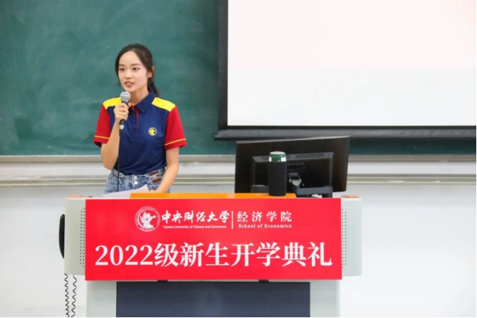 本科生新生代表贾文杉呼吁大家在人生新变局中秉持“忠诚团结,求实创新”的中财大精神和“经世济民”的经院情怀。硕士研究生新生代表曹静提出要督学善思、保持好奇,将远大理想与具体目标相结合,胸怀经世济民之心、心系家国担当。博士研究生新生代表浦林波借毛主席的三句诗词表达了入学的喜悦和对未来的展望:将个人理想融入家国大义,将每一个脚印烙在祖国的大地上。