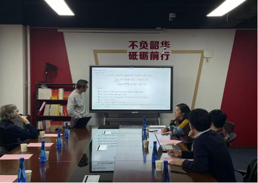 波士顿学院Barbara A. and Patrick E. Roche讲席教授Arthur Lewbel教授做题为“Estimating Social Network Models with Missing Links”的演讲。Lewbel教授首先介绍了社会网络中某个经济主体的产出可能受到的不同影响,尤其是可能受到其他个体特征与产出的影响,即存在同伴效应,并指出基于调查数据构造出的社会网络中,描述两人之间联系的数据(links)可能出现缺失或错配,这种错配会造成内生性问题,使得同伴效应的估计存在偏误。此后,Lewbel教授提出错配网络的转置矩阵是一种有效的工具变量,便于估计错配率p,在此基础上可以构建2SLS模型,解决内生性问题,修正偏误。之后,Lewbel教授对该模型的使用场景进行了拓展,分析了其在有组别固定效应、考虑环境效应、错配率存在异质性等条件下的有效性,并用印度43个村落的实验数据为实例,展示了本文提出的2SLS模型的效果。实证结果证实了同伴效应估计确实存在偏误,会比实际情况偏高,而2SLS模型准确地修正了偏误。最后,Lewbel教授简要谈到了“双向错配”问题,即双方在描述彼此联系时同时出现错误的可能解决方法。
