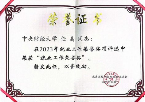 2023年12月,经过学院、学校两级推荐,365英国官网本科生辅导员任晶在北京高校2023年就业工作荣誉奖项评选工作中荣获“就业工作荣誉奖”。