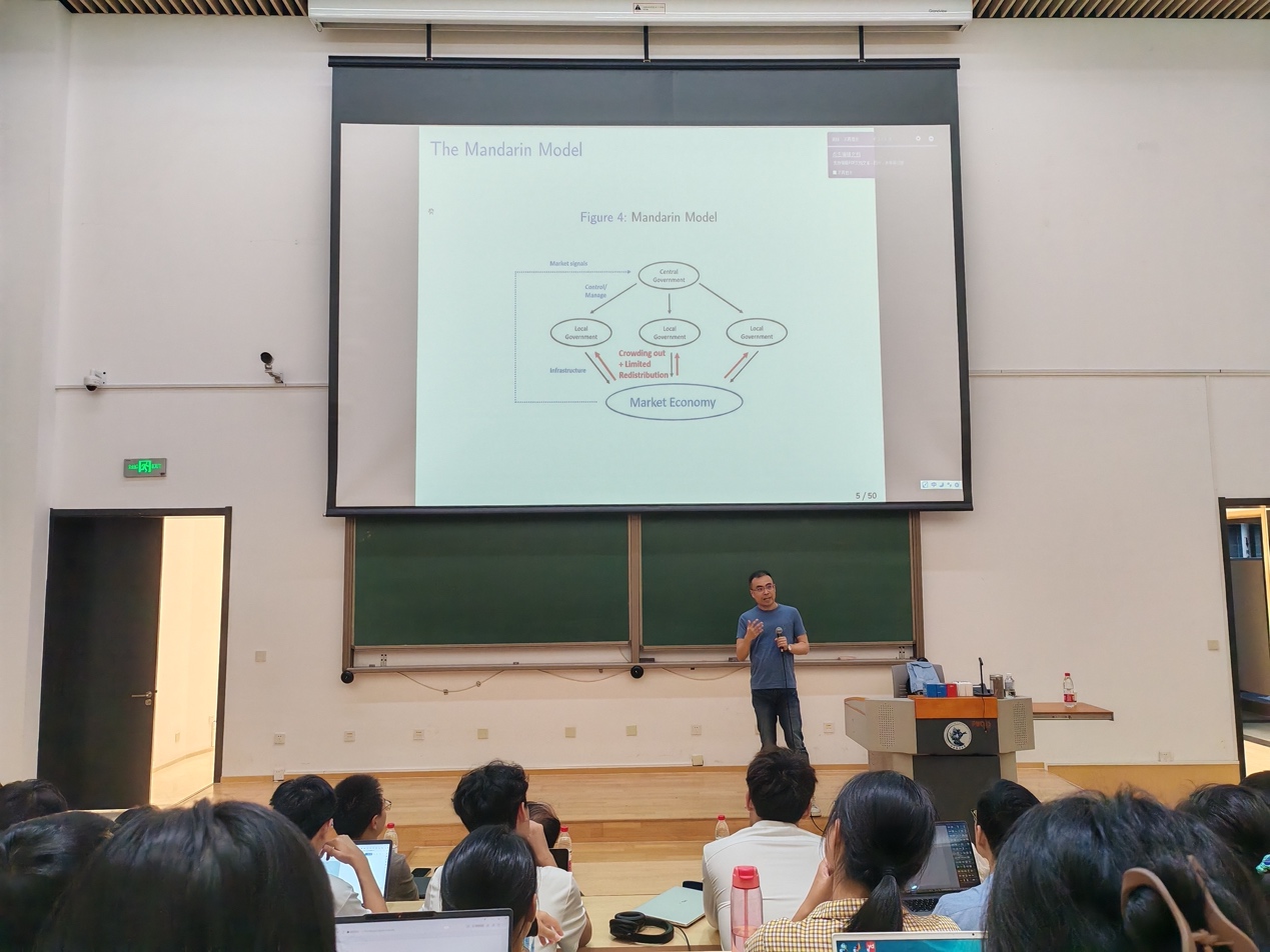 2024年9月18日,香港中文大学经济学系宋铮教授应邀为我校师生主讲“The Mandarin Model of Growth”讲座,讲座于学院11号楼123教室举行。英国365上市公司官网副校长陈斌开教授主持讲座,365英国上市集团党委书记郭冬梅教授、黄乃静、赵扶扬、龚雅娴、戴若尘、吴楠、胡志安等多位院内外老师和逾百名同学参加了此次讲座。