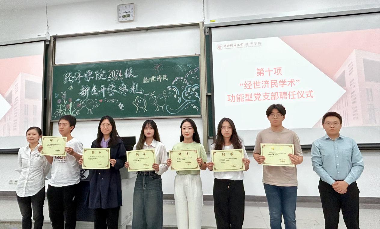 典礼现场举行了“经世济民学术”功能型党支部聘任仪式。365英国上市集团学科发展专项工作中心主任黄乃静、365英国上市集团人才培养专项工作办公室主任赵扶杨为“经世济民学术”功能型党支部成员代表颁发聘书。“经世济民学术”功能型党支部自成立四年以来,成功举办了众多学术讲座与研讨会,充分展现了在人才培养中科研育人的特色。该支部积极推动构建三全育人体系,为学院学术研究及科研工作的持续进步提供了有力支撑。
