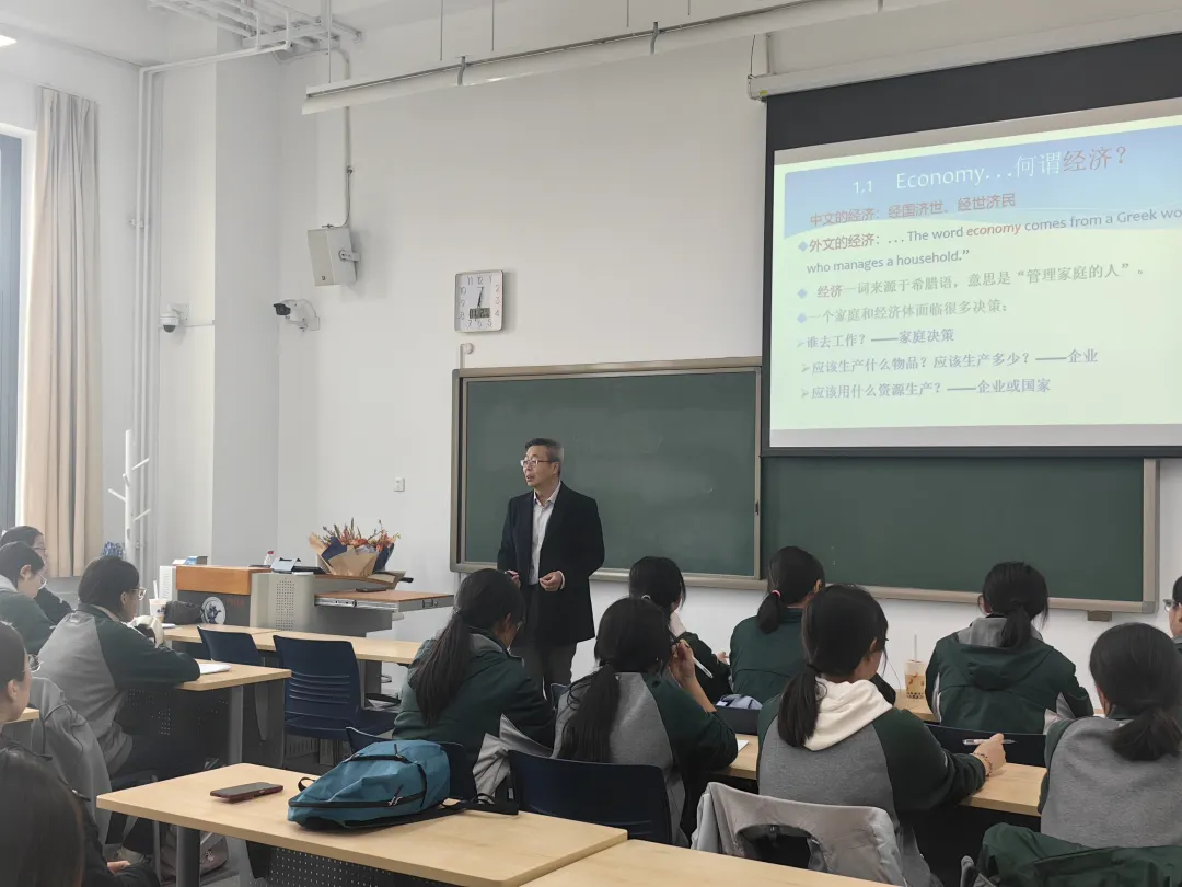 戴教授深入浅出地讲解了经济学的基础知识,通过生动的案例与实用的政策分析为师生们揭示了经济学的奥秘,极大地激发了师生们对经济学探索的热情。同时,结合当前经济形势与政策走向,戴教授进行了深入的政策分析,不仅剖析了经济现象背后的深层逻辑,还展示了经济学在指导实践、解决现实问题中的强大力量。在讲座中,戴教授强调了经济学在社会发展与国家建设中的重要性,鼓励华山中学的同学们要敢于梦想,勇于担当,积极投身于财经事业,将个人的成长融入国家富强和民族复兴的伟大征程中。