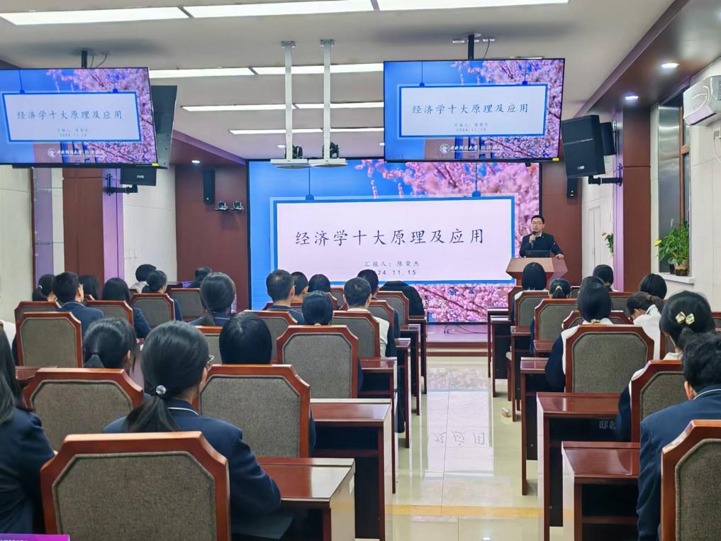 两位老师以经济学的基本概念和原理为切入点,结合当前国内外经济形势,用通俗易懂的语言和贴近生活的实例,向同学们展示了经济学的魅力和实用价值。他们不仅深入浅出地讲解了机会成本、市场机制、国际贸易等重要知识,还通过分享经济学家的故事和经典案例,引导学生们思考经济学在现实生活中的运用。