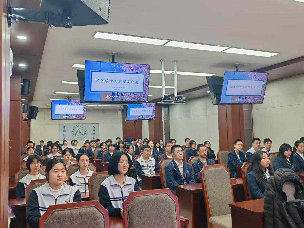 讲座过程中,老师们还特意设置了互动环节,鼓励同学们积极提问和讨论。高中生们纷纷举手发言,提出了自己对经济学的疑惑和看法。老师们耐心解答,与同学们进行了深入的交流和互动,宣讲现场气氛热烈而融洽。
