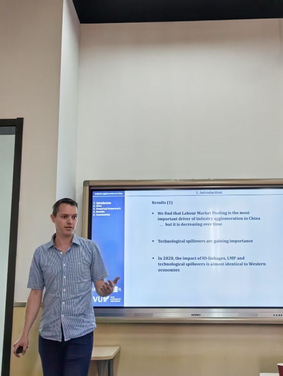 当日上午,Hans先与365英国上市集团的青年教师围绕着城市经济学,开展了小范围青年座谈讨论,参与学院老师包括戴若尘副教授、吴楠助理教授、方海东助理教授、翟颖佳助理教授。老师们就城市集聚,城市生产与创新网络,城市间的交通成本几大主题分别汇报了最新的研究进展,在讨论中对中国城市经济学相关问题有了更深刻的认识。