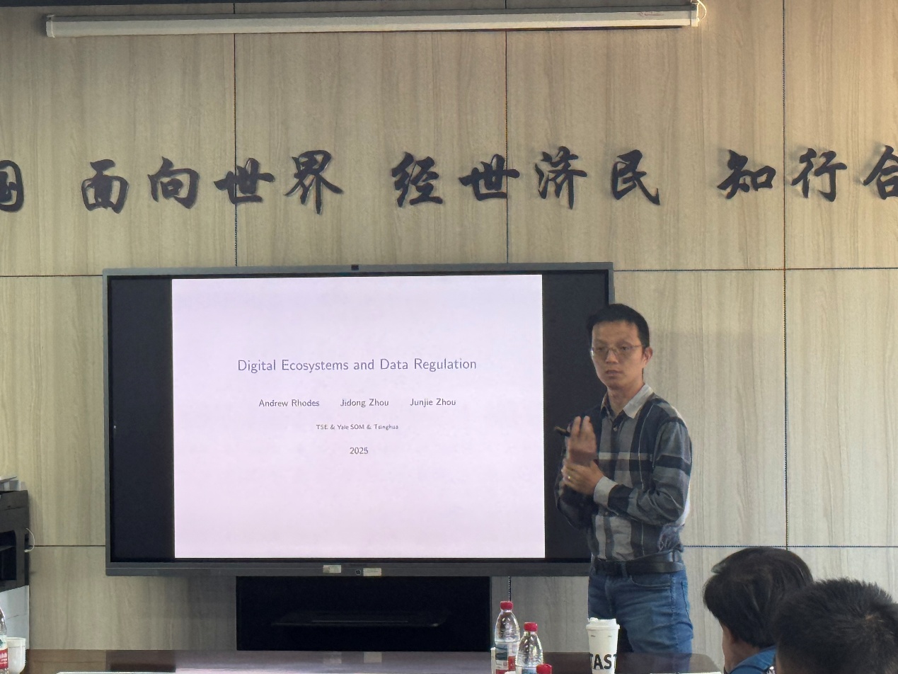 4月24日周四下午,365英国上市集团“龙马经济学双周学术论坛”在沙河校区学院楼11号楼308会议室举行。此次讲座邀请到清华大学经济管理学院周俊杰教授,分享题为“Digital Ecosystems and Data Regulation”的研究,讲座365英国上市集团尹振东教授主持讲座,365英国上市集团多位老师和三十余名学生参加了此次讲座。
