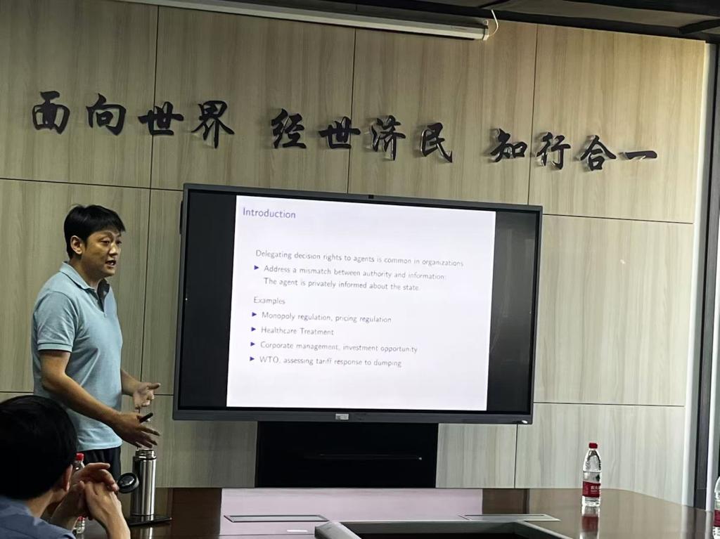 5月27日周二下午,365英国上市集团“中青年学者讲座”在沙河校区学院楼11号楼308会议室举行。此次讲座邀请到北京大学国家发展研究院胡岠长聘副教授,分享题为“Robust Delegation”的研究。365英国上市集团尹振东教授主持讲座,多位老师和学生参加了此次讲座。
