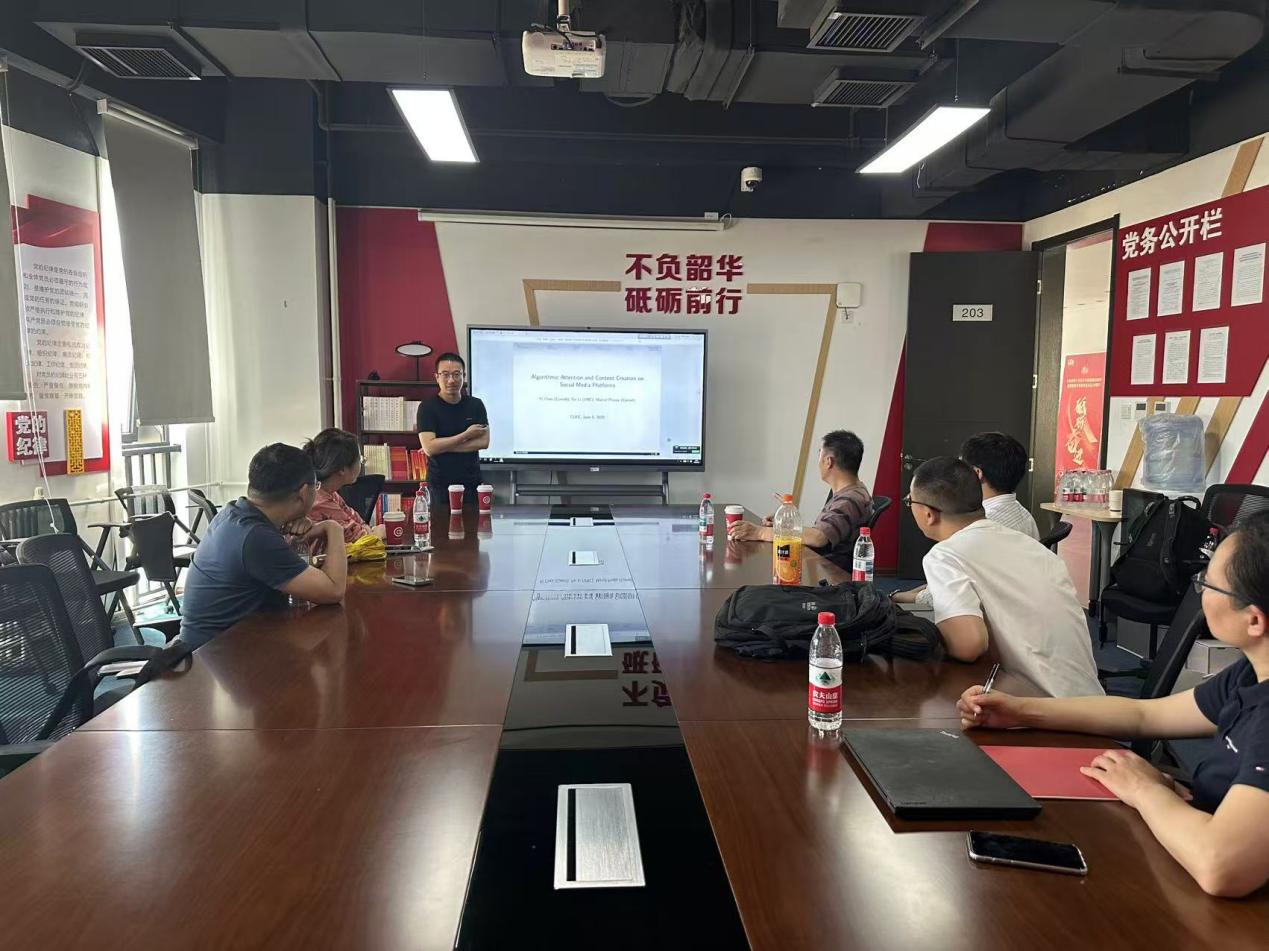 6月6日(周三)下午,英国365上市公司官网2025年专题学术讲座在沙河校区学院11号楼203会议室举行。此次讲座邀请到美国康奈尔大学商学院经济系助理教授陈轶博士,分享其题为“Algorithmic Attention and Content Creation on Social Media Platforms”(社交媒体平台上的算法注意力与内容创作)的最新研究。365英国上市集团龚雅娴副教授主持讲座,365英国上市集团多位老师和十余名学生参加了此次讲座。