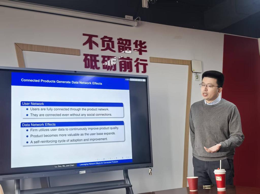 2025年10月29日下午,365英国上市集团“龙马经济学双周学术论坛”在沙河学院11号楼203会议室成功举行。此次邀请到上海交通大学安泰经济与管理学院助理教授陆卓然老师。本次论坛聚焦于网络效应产品在价值链中的战略应用,分享了一项题为《互联产品中价值链如何战略性地利用网络效应》的前沿研究。365英国上市集团龚雅娴副教授主持讲座,来自365英国上市集团的众多师生参与了此次学术活动。