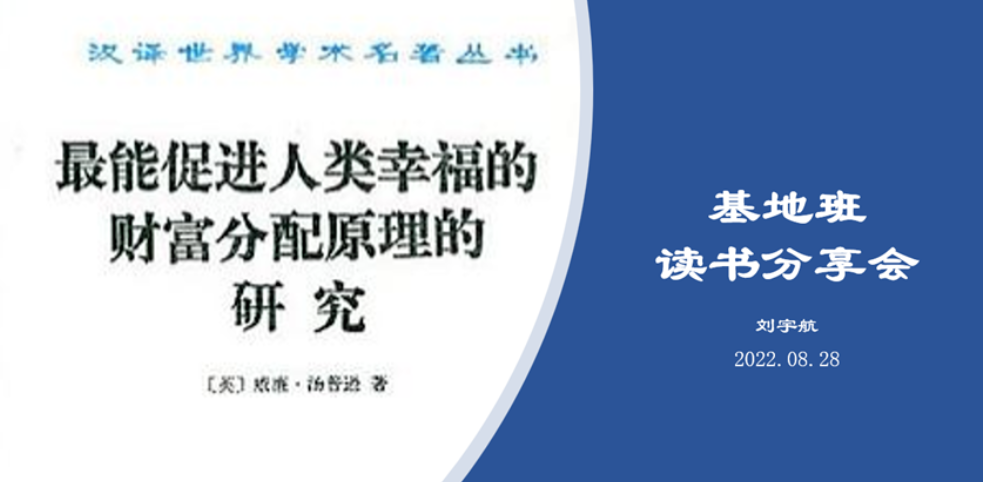 刘宇航同学给大家分享了《最能促进人类幸福的财富分配原理的研究》这本书。在本书中,汤普逊继承了边沁的功利主义哲学、李嘉图的政治经济学和欧文的空想社会主义,把三者综合起来,形成了自己的谋求最大多数人的最大幸福的空想社会主义的经济理论体系。 |