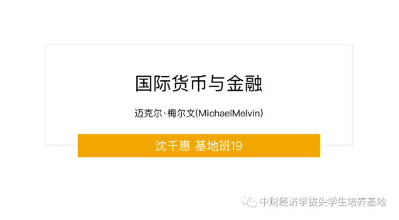 接着,沈千惠同学带来了迈克尔·梅尔文教授所著的《国际货币与金融》一书。迈克尔·梅尔文教授现任加利福尼亚大学洛杉矶分校经济学系教授,主要研究方向为投资与国际金融、外汇市场与现代汇率模型。该书主要阐述了货币供给、需求、价格、利率、汇率的变化以及国际金融参与者所带来的国际影响。沈千惠同学首先从全局视角论述了国际金融体系的组成部分,说明了货币、汇率、利率的决定因素和它们之间的关系。接着介绍了几种主流的贸易收支与汇率决定理论,包括货币分析法模型(MA)、资产平衡法模型(PB)、国际收支的货币分析法模型(MAPB)。在货币分析法模型中,货币的供给需求是决定两国汇率及其变动的关键因素。然而随着时间的推移,金融资产的交易趋于便捷,人们对国际汇率形成的决定因素的讨论从每种货币的供求平衡问题转移到了金融资产的贸易平衡问题上。因此,汇率决定模型也从货币分析法发展到了关注金融资产流动的国际收支的货币分析法上。作为一本教科书,本书的主要特点是对深奥的国际金融理论进行了深入浅出的解释,侧重于探讨货币事件对实际经济的影响,对现实世界的现象有很强的解释力与说服力。