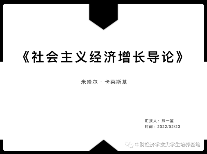 首先,熊一鉴同学为我们介绍了由米哈尔·卡莱斯基所写的《社会主义经济增长理论导论》。米哈尔·卡莱斯基是一位有着犹太血统的波兰经济学家,也是当代资本主义经济动态理论、社会主义经济增长理论和发展经济学这三个领域的开拓者之一。这本书主要从社会主义经济增长的决定因素、限制因素、增长途径、投资与增长结构的决定、社会主义经济长期计划的制定五个方面详细地介绍了社会主义经济增长理论。同时,这本书也体现了卡莱斯基对增长理论四个方面的贡献:第一,分析了社会主义投资膨胀的原因。第二,总结了决定适度积累率和增长率的基本方法。第三,构建了总增长率、投资率同增长结构、投资结构之间的联系。第四,提出了制定经济发展长远规划的科学方法。《社会主义经济增长理论导论》是经济学史上最早完整研究社会主义经济增长理论体系的著作,不仅为社会主义的宏观经济动态理论奠定了基础,也为社会主义宏观经济控制与协调提供了新的方法。