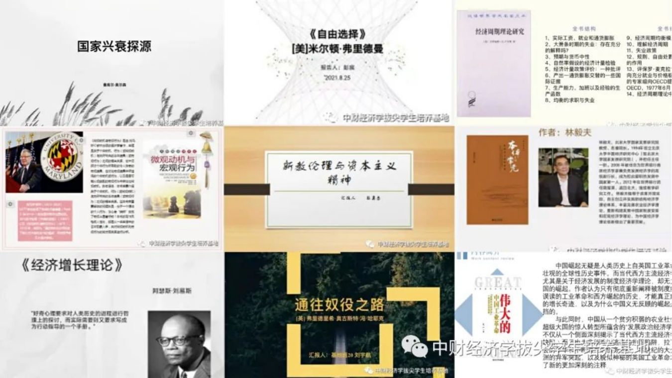 这个暑期,基地班的同学们在通过上学期的经典读书的高标准严格培训基础上,自行组织了暑期读书会。在导师的指导下,同学纷纷选择了自己感兴趣且适合目前学习阶段的学科内外经典书目。经过一个多月的深入研读和精心准备,同学们在8月中下旬至9月初在线上开展了十期精彩的读书会,不仅分享了众多经典书籍的重要思想,也带了许多思考。