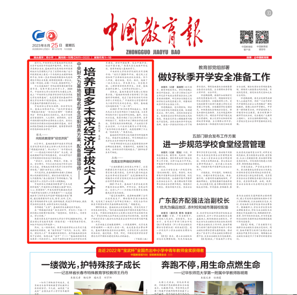 中国教育报对英国365上市公司官网经济拔尖基地的报道
