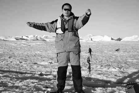 在中山站度夏考察期间,翟万营白天参加卸货,晚上在海冰上钓鱼。“有一次钓了4个多小时,一条鱼没钓到,双手都冻伤了。”翟万营说,钓鱼也是件需要耐心和毅力的事儿。