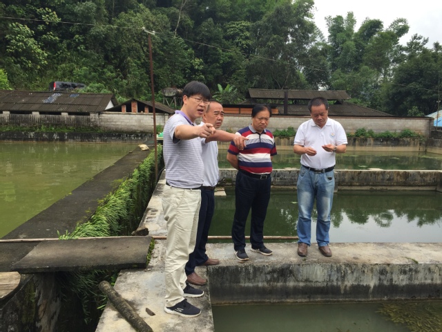 服务团参观了州水产站位于芒市的土著鱼驯养繁殖基地,了解到他们正在对龙江结鱼、墨脱四须鲃等本地鱼类进行人工繁殖,但实际操作过程中困难较大,存在一定的技术难题后,服务团详细查看了现场的水质、水温、溶氧以及繁育设施后,为他们提出了一些可行性的建议,并建议德宏州水产站与上海青浦区的相关鱼类苗种场展开合作,以期突破这些鱼类繁育难关,继而进行增殖放流,实现当地渔业可持续发展。
