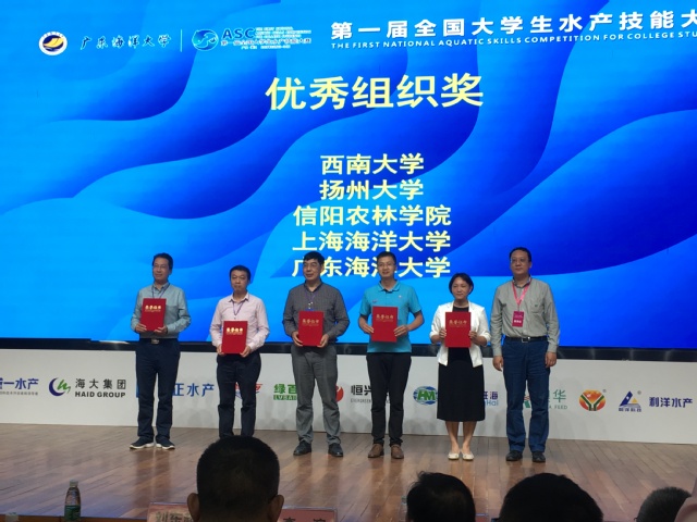 为深入贯彻落实教育部、农业农村部、国家林业和草原局《关于加强农科教结合实施卓越农林人才教育培养计划2.0的意见》,强化大学生专业实践技能培养,11月22日至24日,由教育部高等学校水产类教学指导委员会、水产学科国家级实验教学示范中心联席会主办,广东海洋大学承办,广东恒兴饲料实业股份有限公司等单位协办的首届全国大学生水产技能大赛在广东海洋大学(湖光校区)举行。来自全国54所高校的近300名选手同台竞技,展示我国高校水产类专业学生的实操技能和专业综合素养。我校6名参赛选手在陈立婧、龚小玲、张瑞雷、许丹、徐灿等5位老师的带领下前往广东参赛,参与了全部六个比赛项目,最终斩获特等奖2项,一等奖3项,二等奖1项。我校荣获优秀组织奖。