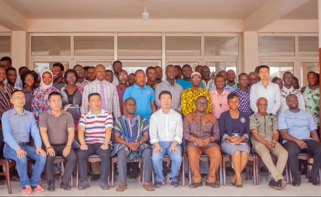 本次培训班参与者包括加纳发展研究大学、加纳能源与自然资源大学的部分师生、加纳北方省渔业与水产部门官员,以及当地水产养殖业者,共计72人。五位老师分别从罗非鱼养殖概况、罗非鱼遗传育种、养殖技术、营养与饲料、疾病与防控等方面进行了讲授,耐心回答了学员的提问,并与部分参与者进行了广泛的交流。此次技术培训为加纳罗非鱼养殖技术升级提供了有效指导和帮助,达到了预期培训效果。培训结束后,加纳发展研究大学校长Teye Gabriel Ayum亲切接见了代表团,高度赞赏了我校代表团的工作和付出,并期望两校在更多领域交流合作,促进加纳罗非鱼养殖业的健康与持续发展。